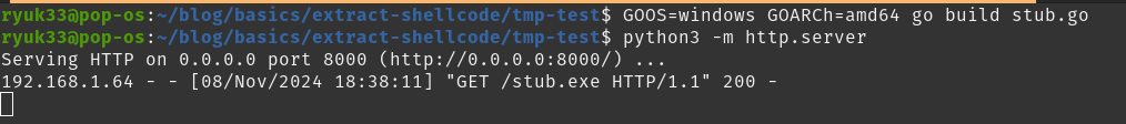 This command will compile the stub.go file into a Windows executable (stub.exe).\